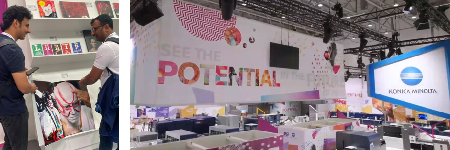 8年ぶりのリアル開催となった同展示会では、初出展となるB2サイズインクジェット印刷機の最上位機種 AccurioJet(アキュリオジェット)60000やMGI Digital Technology(本社:フランス)との共同出展となる AlphaJET(アルファジェット)を中心に、印刷工程の自動化・省力化を推進することにより、印刷会社の労働環境の改善や環境負荷の低減、持続的な事業運営に貢献する各種ソリューションを訴求し、多くの反響をいただきました。