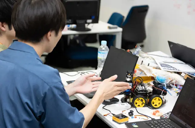昨年度に開発された自律走行ロボットを題材に、改良プロジェクトに取り組む実践型インターンです。メカ設計、制御、物体認識、SLAMなどの技術領域に分かれて、社員と協力しながら開発を進めます。最終日には成果発表も行い、実践的な開発プロセスを経験できます。